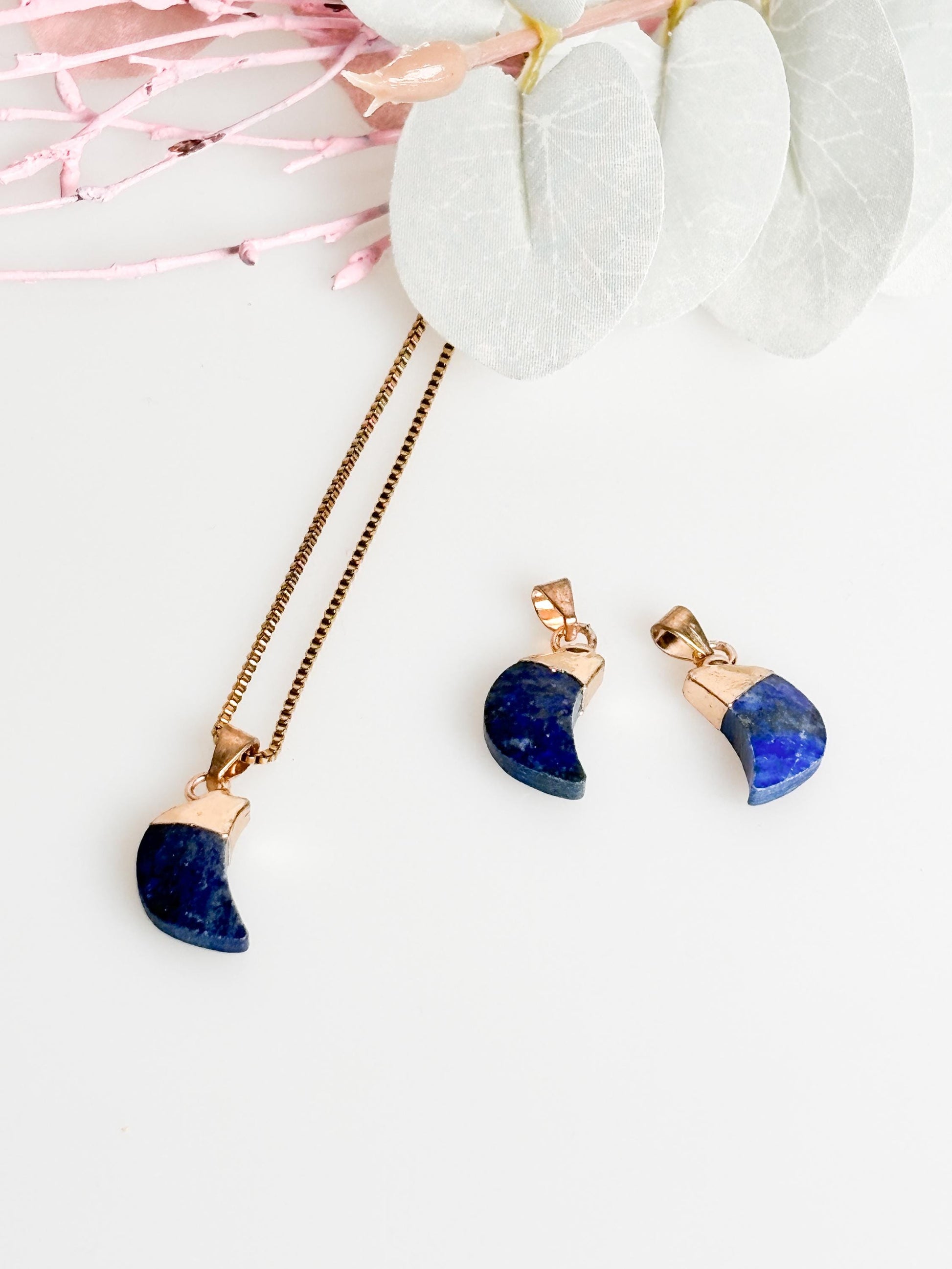 Lapislazuli Mond Kettenanhänger - Gold gefasst - ca. 1,7x1cm