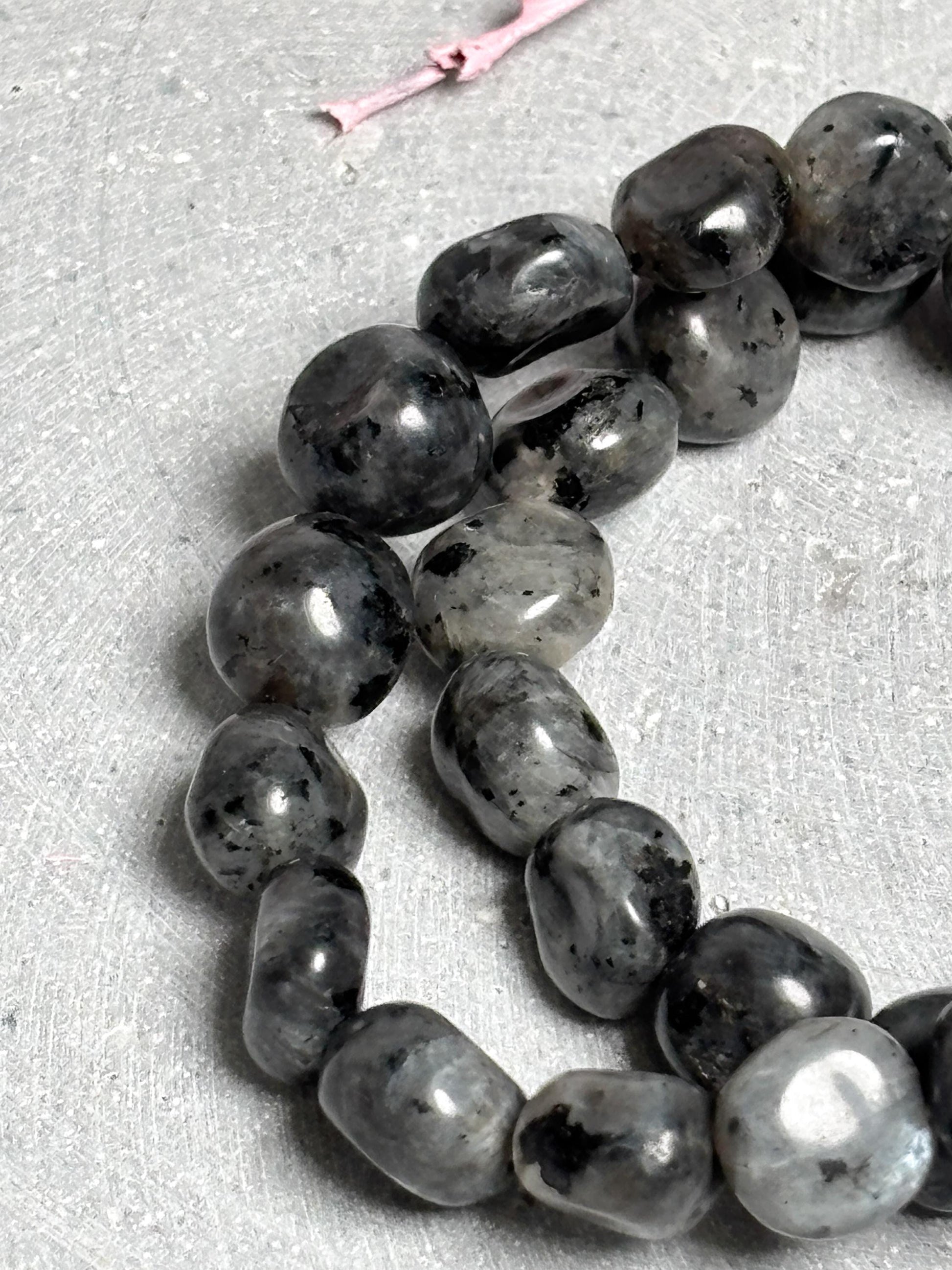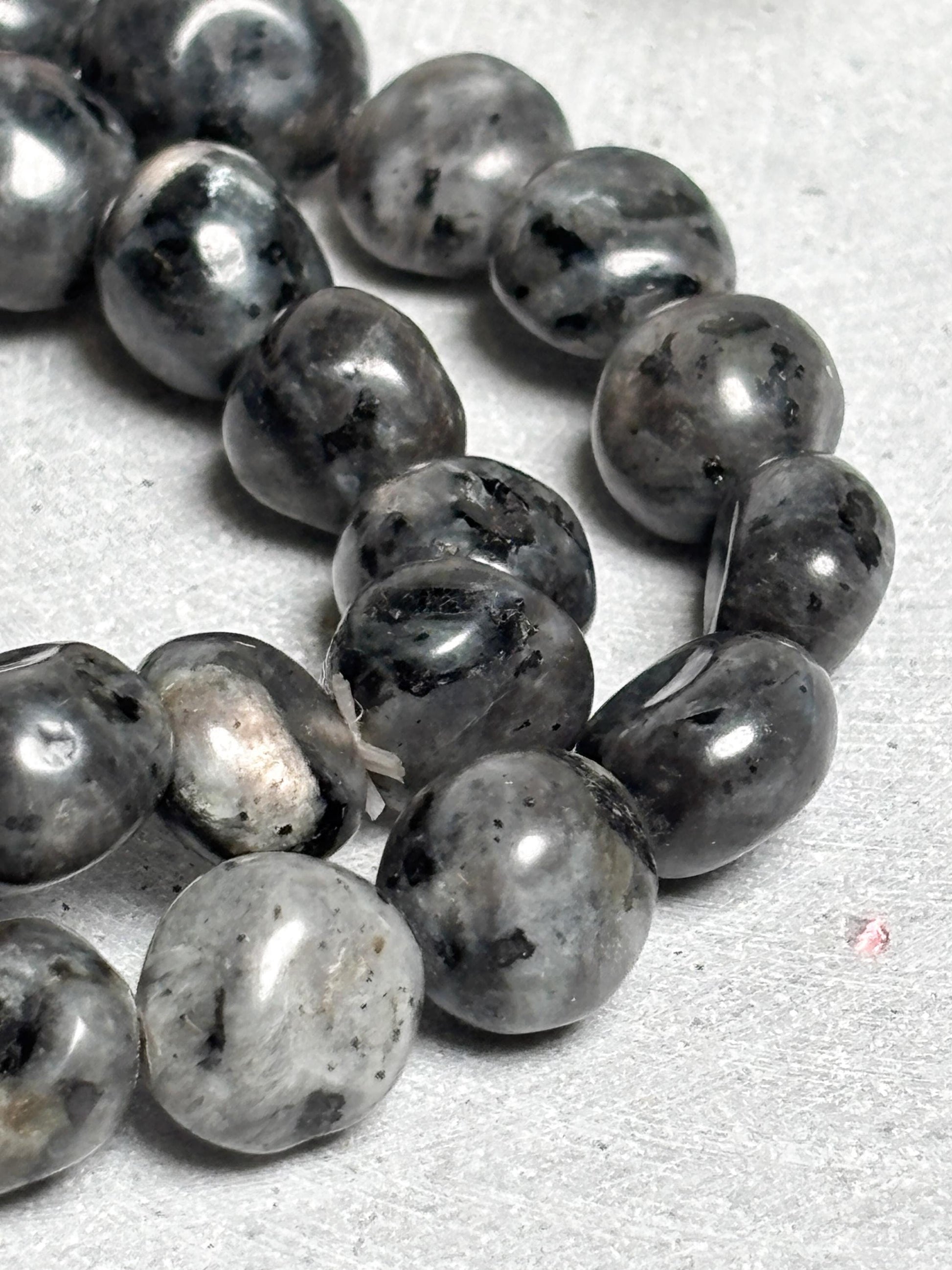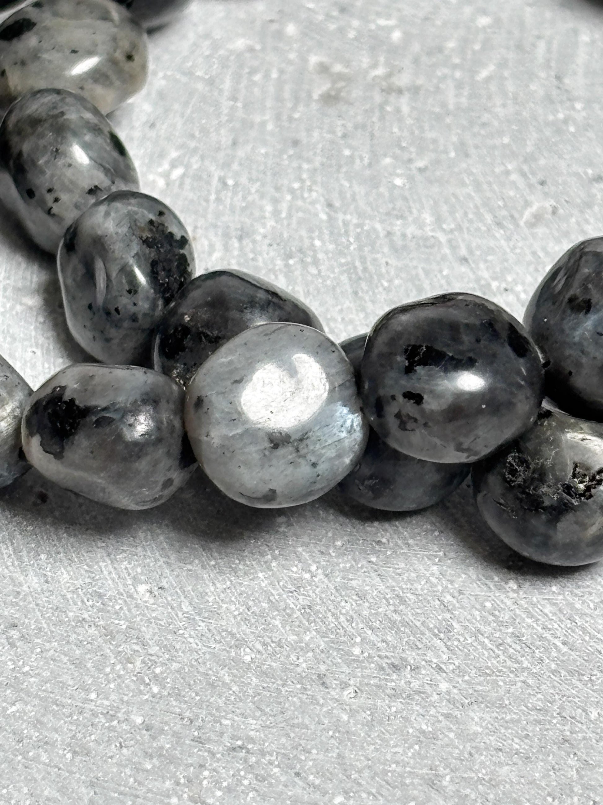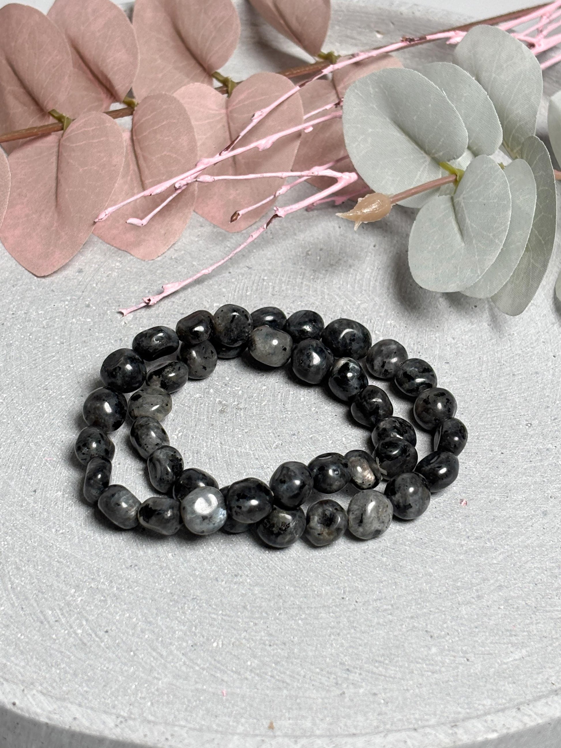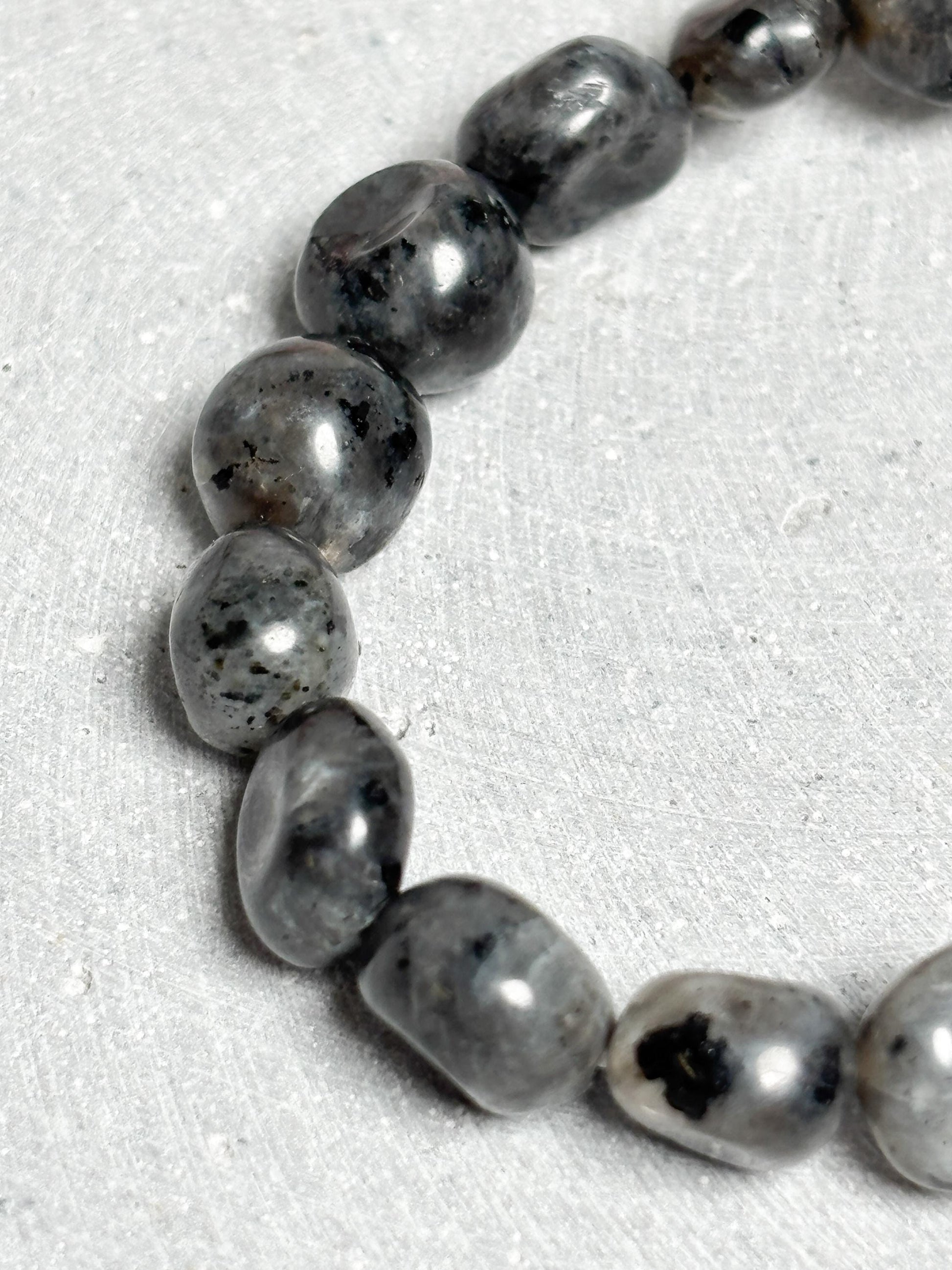 Das Larvikit-Armband ist ein eleganter Begleiter für Alltag und besondere Momente. Es lässt sich wunderbar mit silberfarbenem Schmuck kombinieren und harmoniert mit klaren, neutralen Tönen. Ideal auch für Meditation oder Energiearbeit – Larvikit wirkt ausgleichend und stärkt die innere Stabilität.