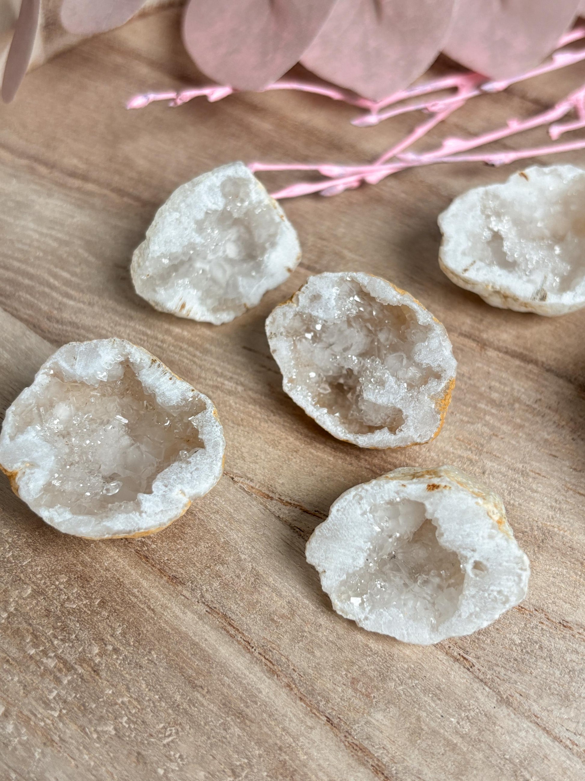 Quarz Drusen aus Marokko sind Naturwunder, die in geologischen Prozessen über Jahrtausende entstanden sind. Drusen sind Hohlräume im Gestein, die mit einer Vielzahl kleiner, funkelnder Quarzkristalle ausgekleidet sind. Diese einzigartigen Kristalle brechen das Licht auf wundervolle Weise und verleihen der Druse ihren unvergleichlichen Glanz.