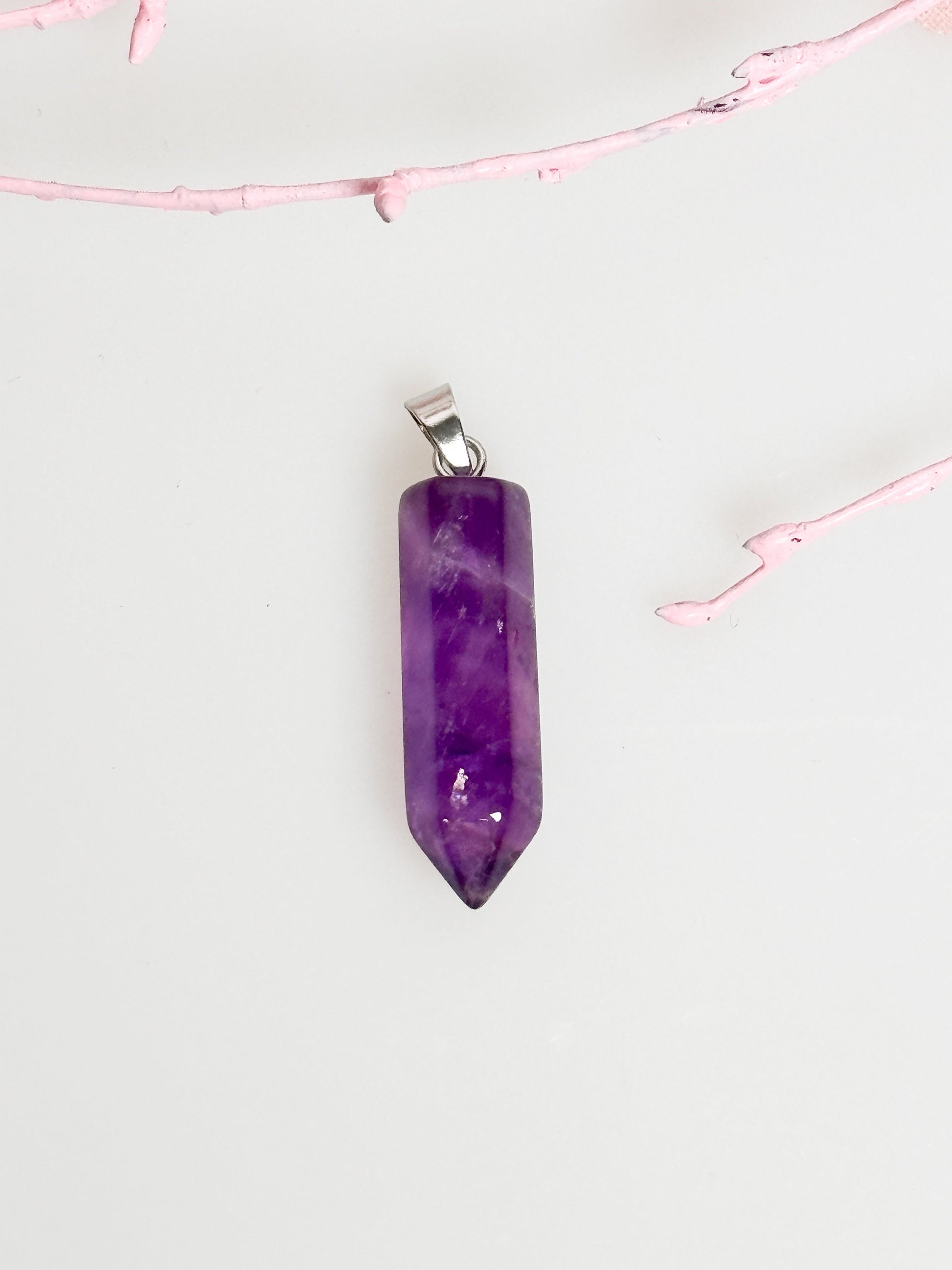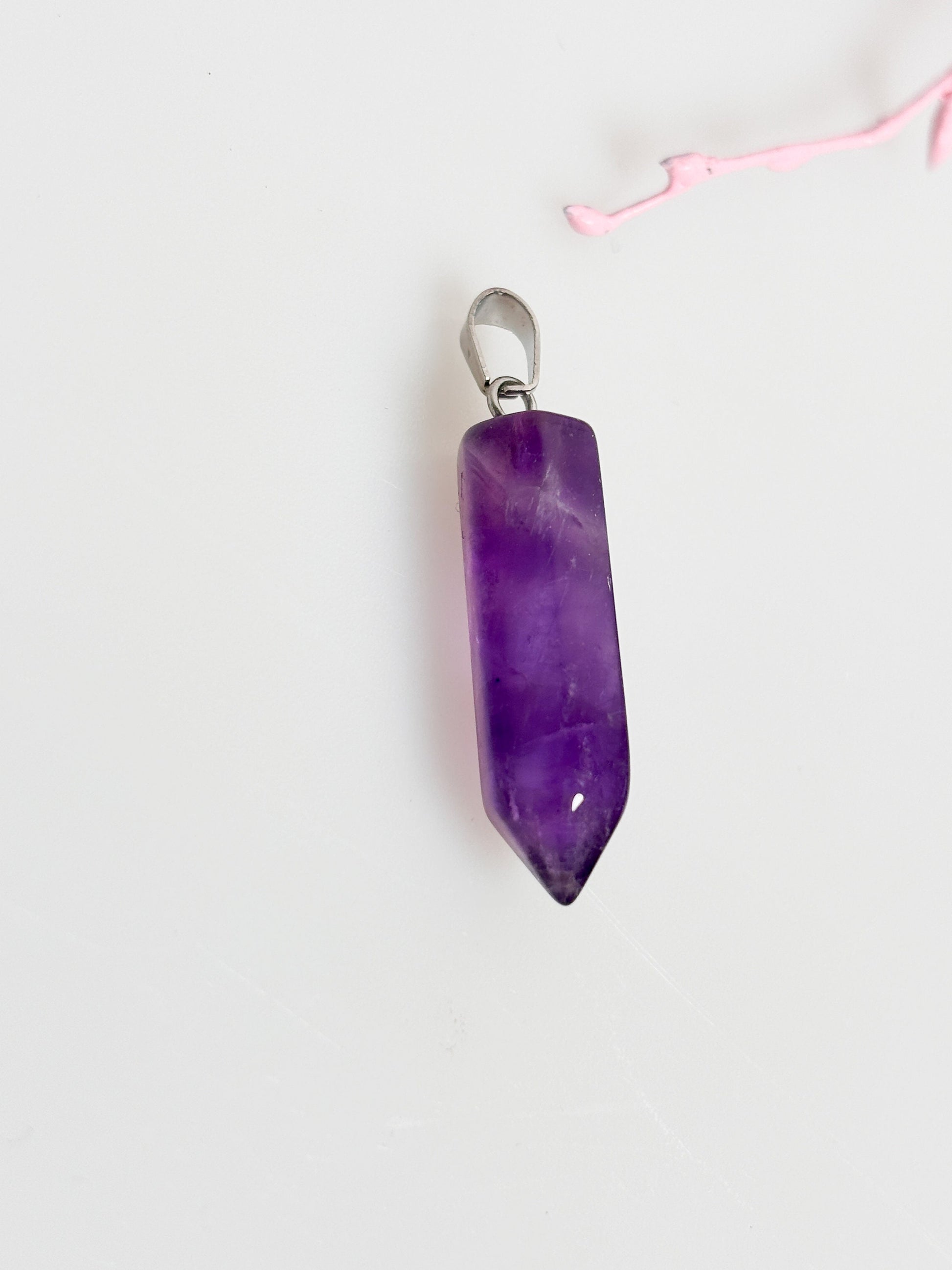 Der Amethyst, bekannt als der Stein der Spiritualität und inneren Ruhe, strahlt eine beruhigende Energie aus und fördert einen tiefen Frieden im Geist. Trage diesen Anhänger, um deine spirituelle Verbindung zu stärken und deine innere Harmonie zu fördern.