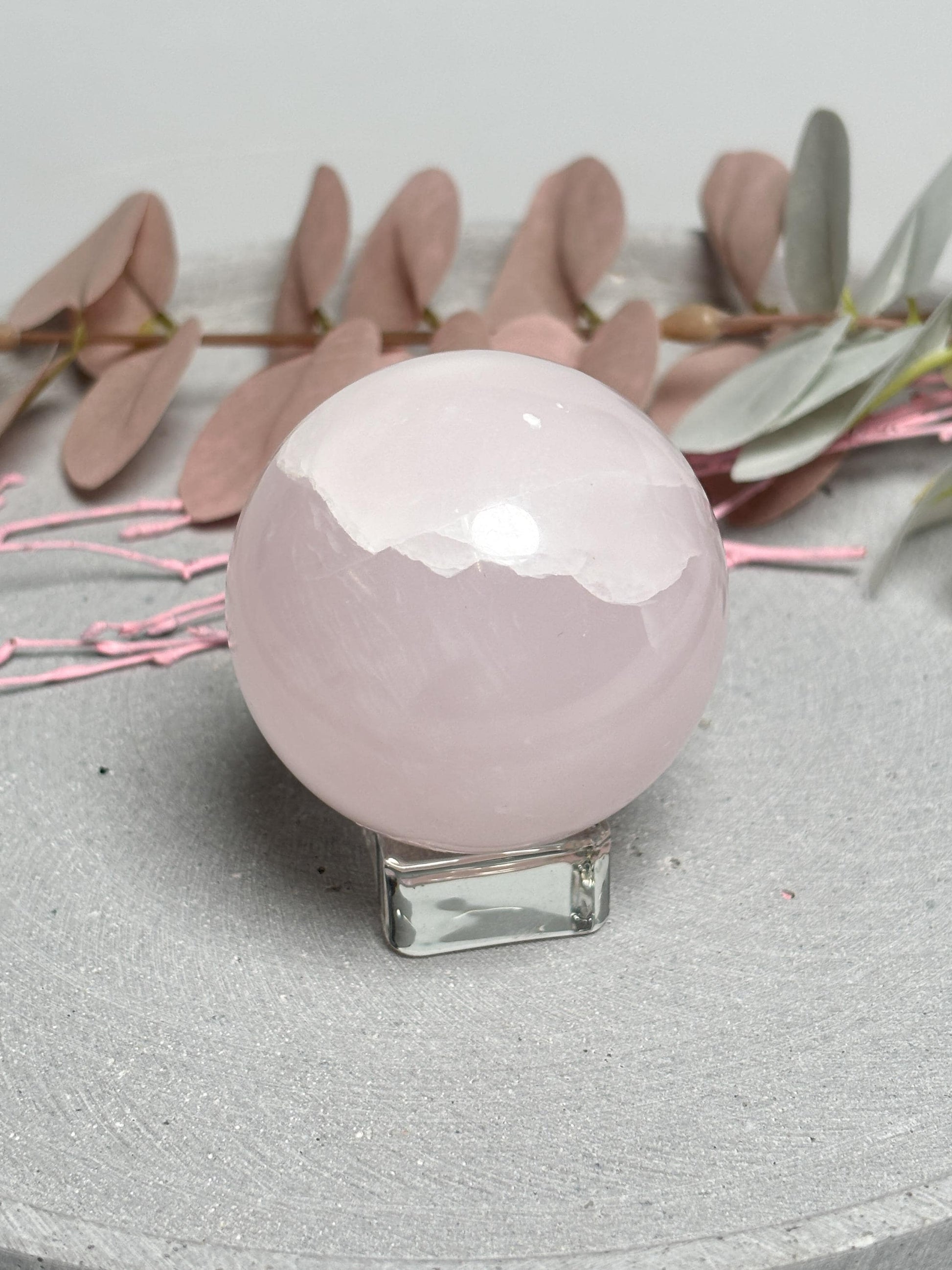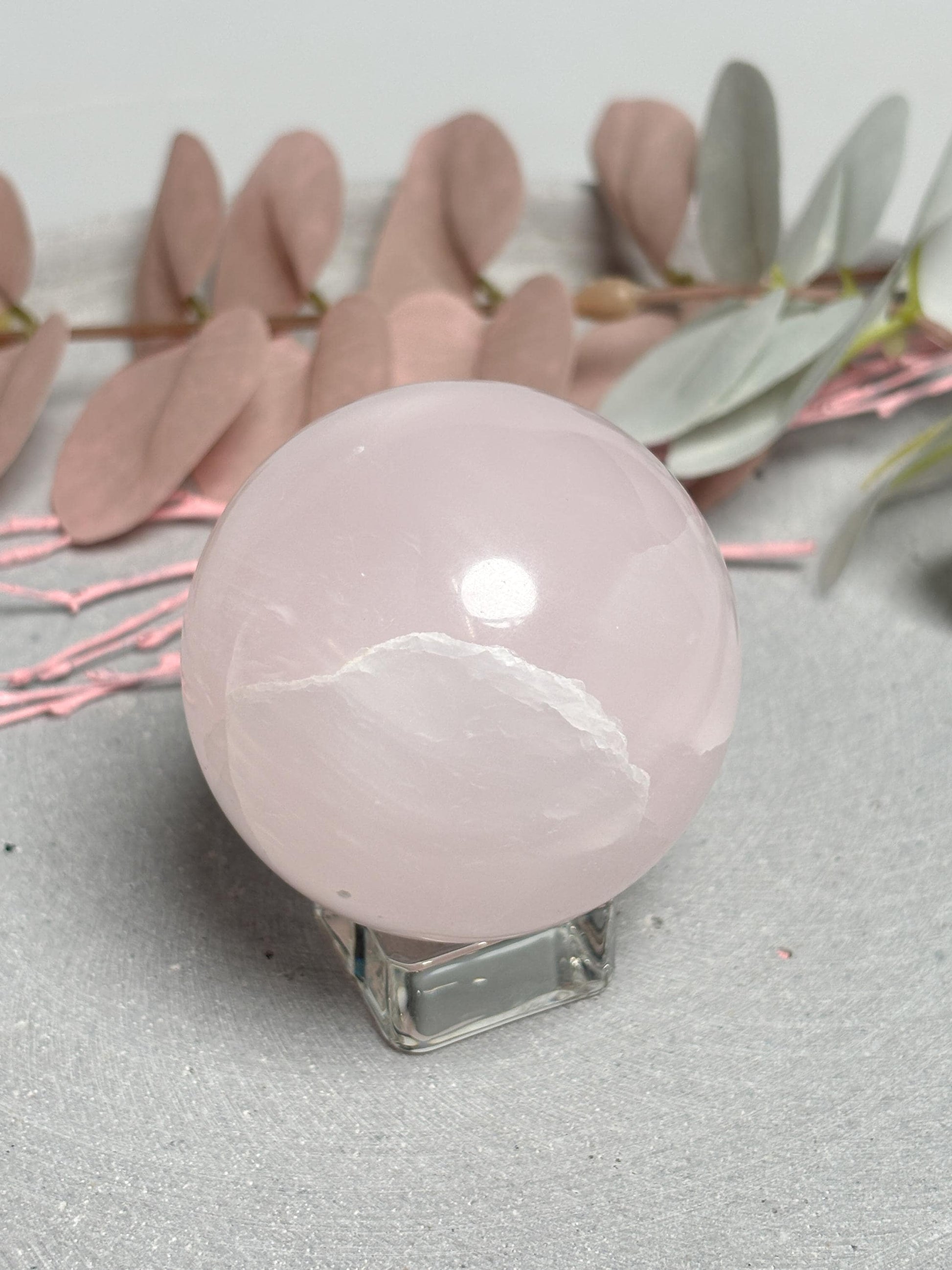 Pink Calcit Kugel 5,8cm UV-reaktive Kristallkugel fluoreszierender Calcit runde Deko Kugel aus Naturstein