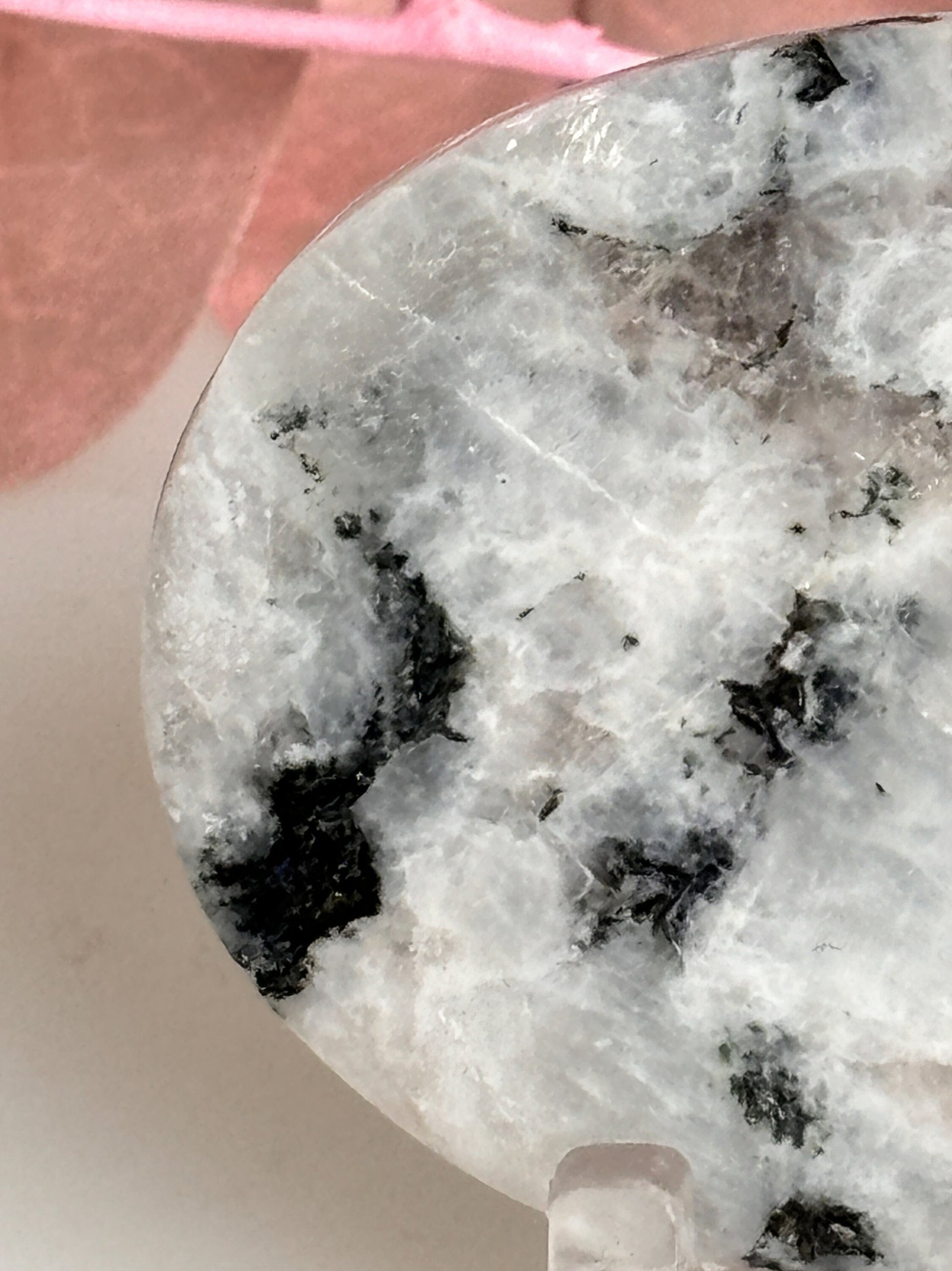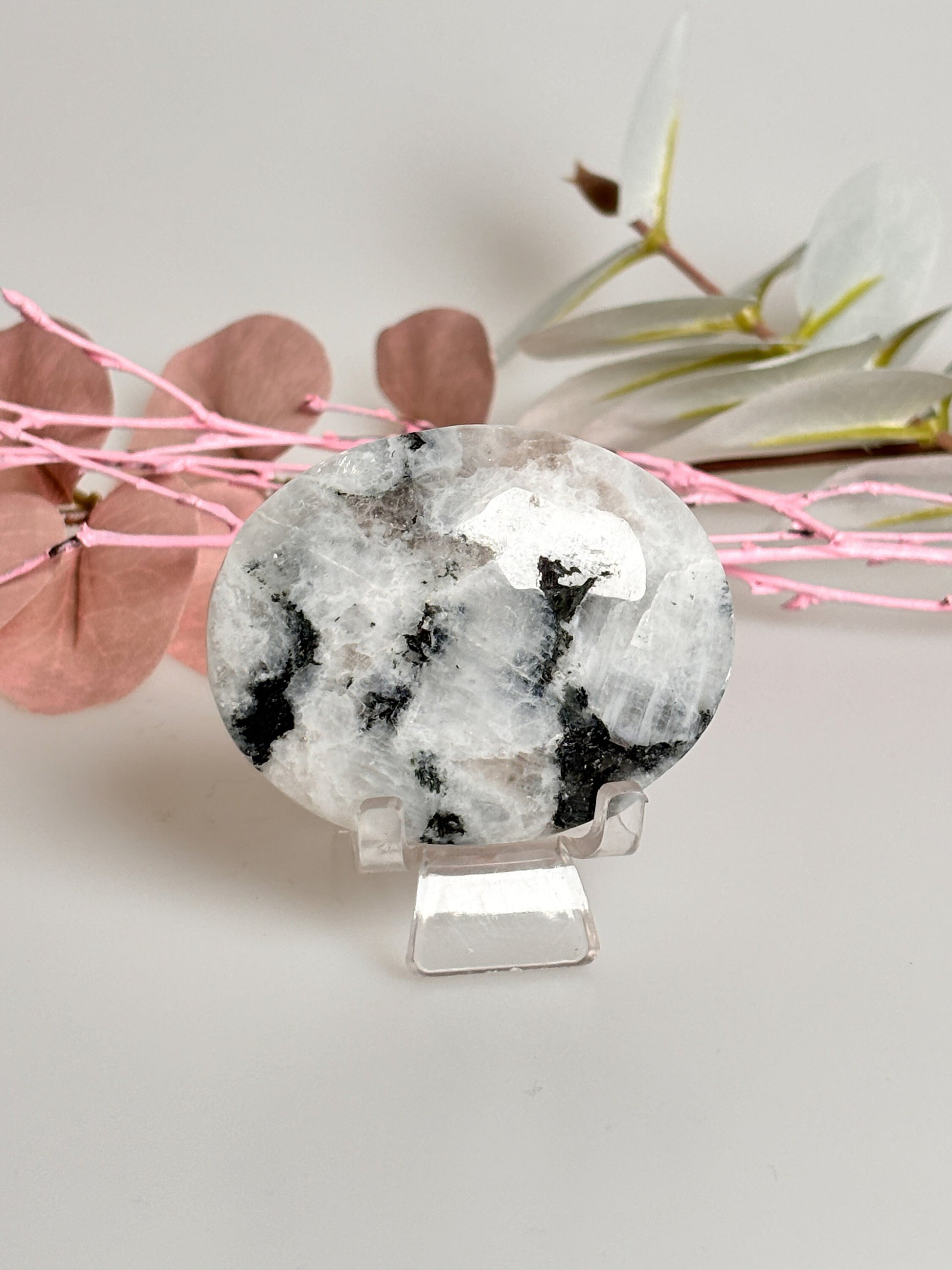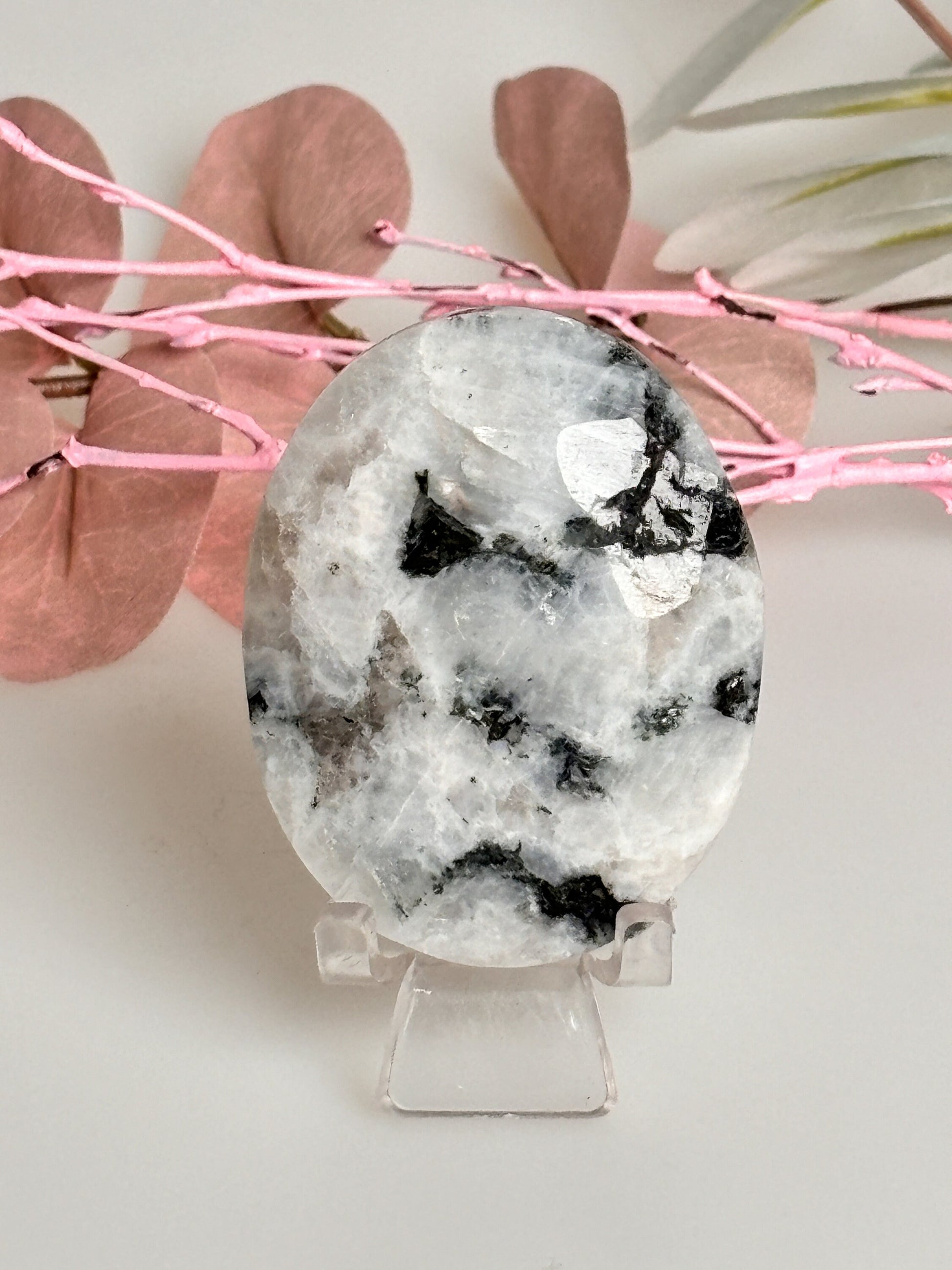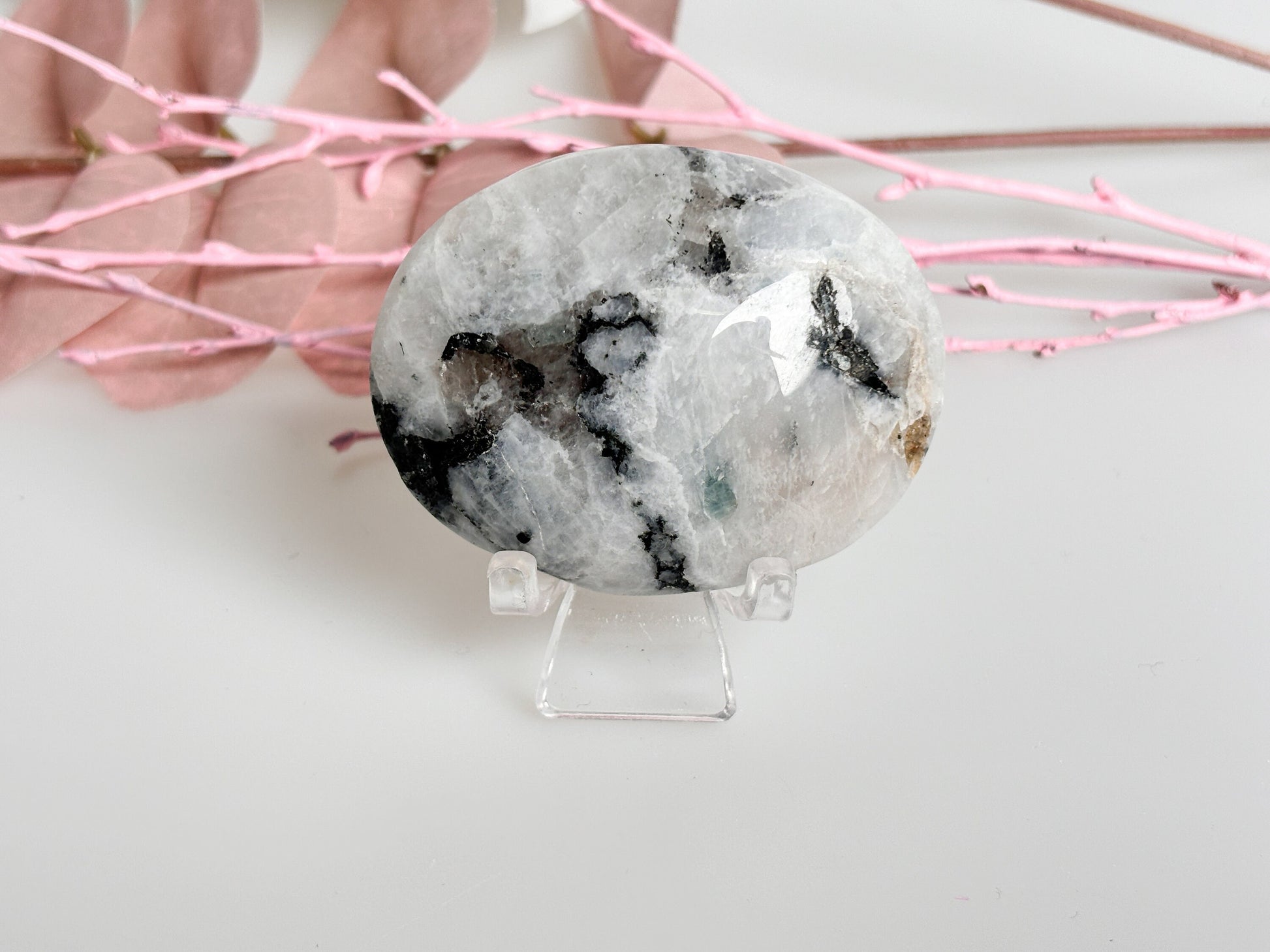 Regenbogen Mondstein Palmstone mit Flash - Optional mit Halter
