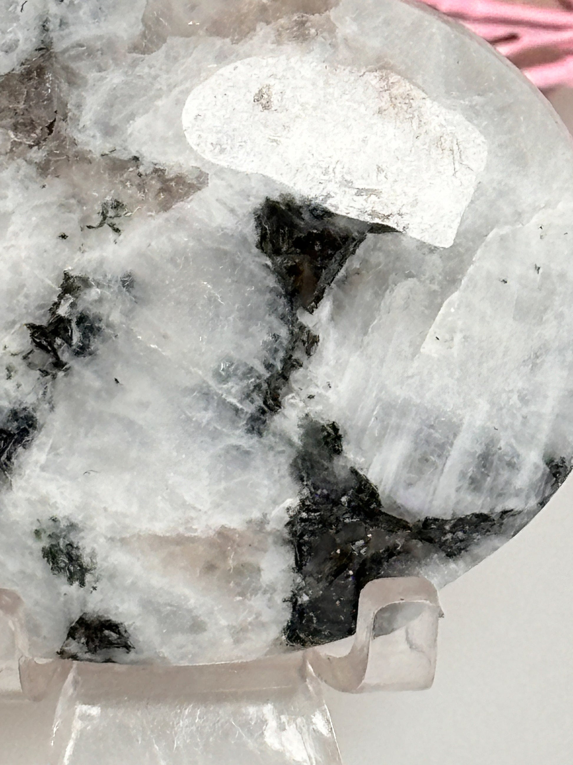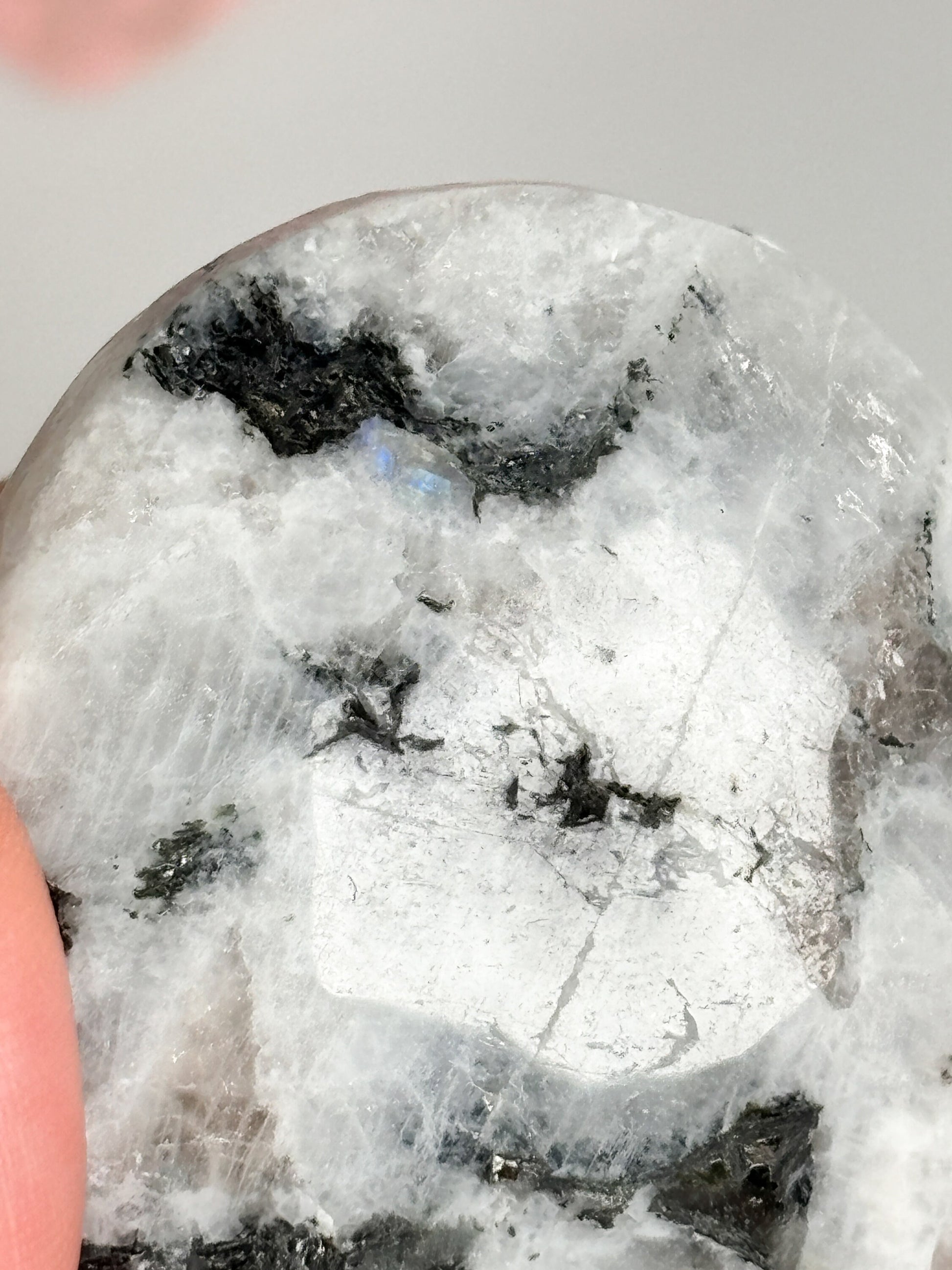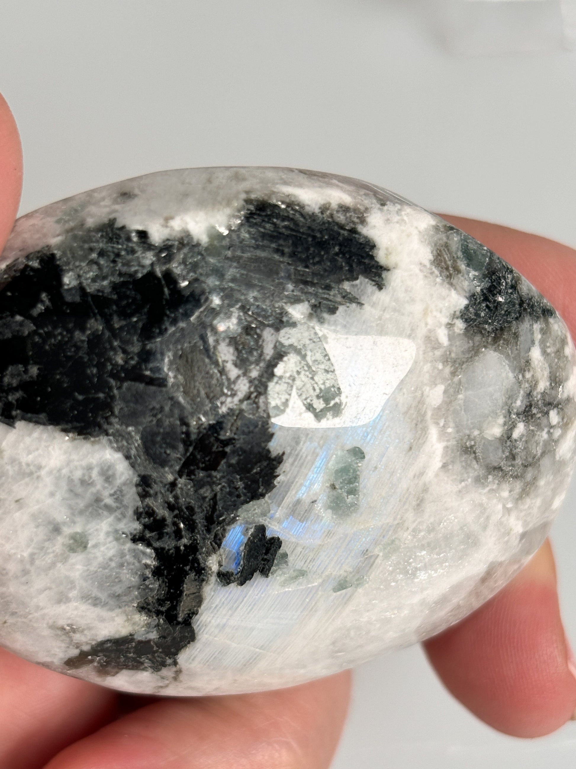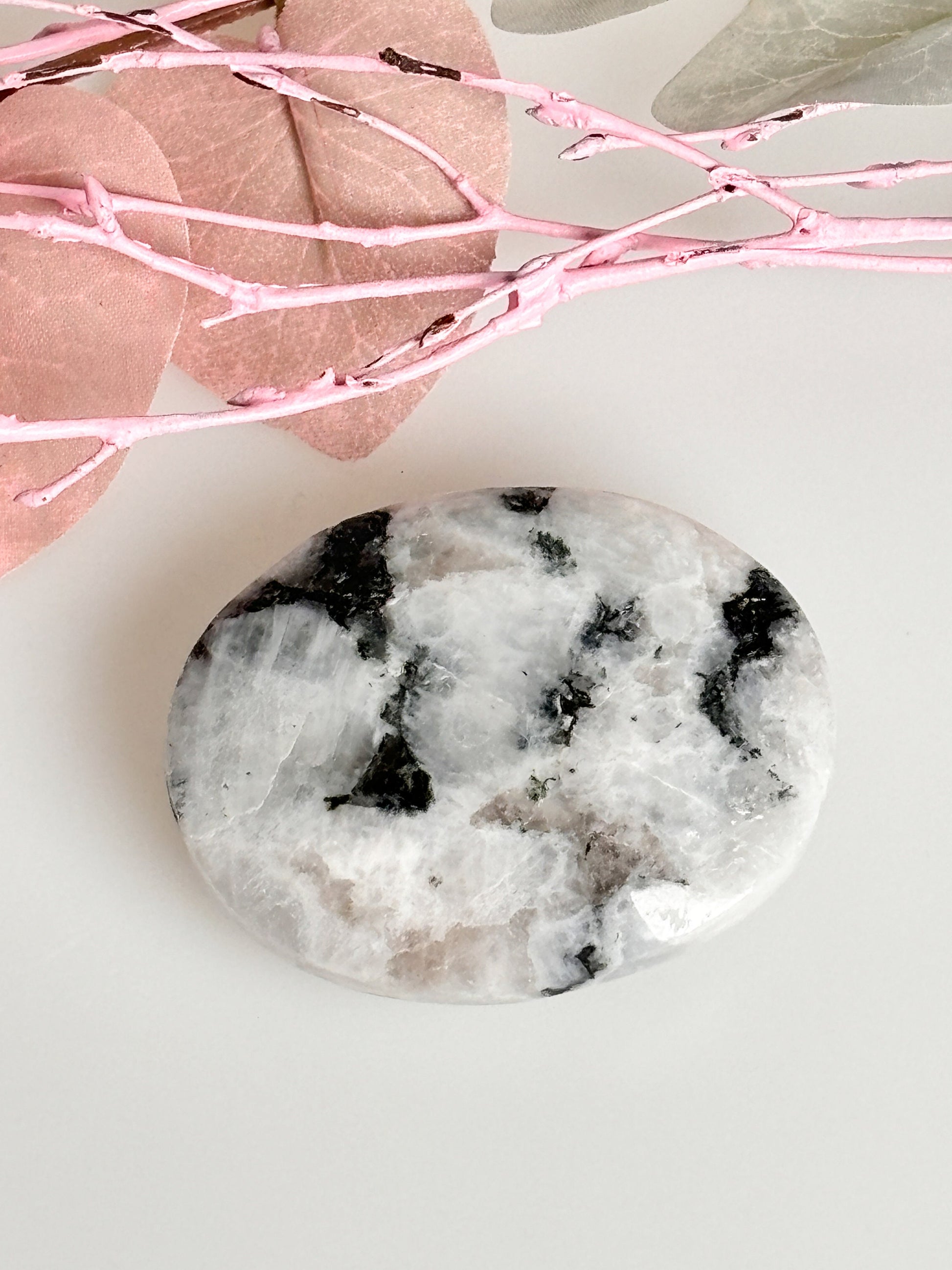 Regenbogen Mondstein Palmstone mit Flash - Optional mit Halter