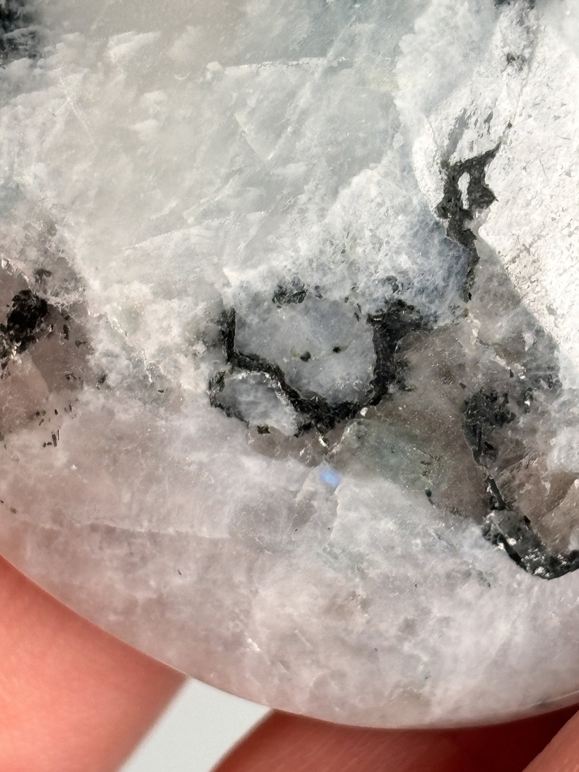 Regenbogen Mondstein Palmstein Heilsteine für Meditation & Energiearbeit, 5-6cm, Unikat/flash/druzy