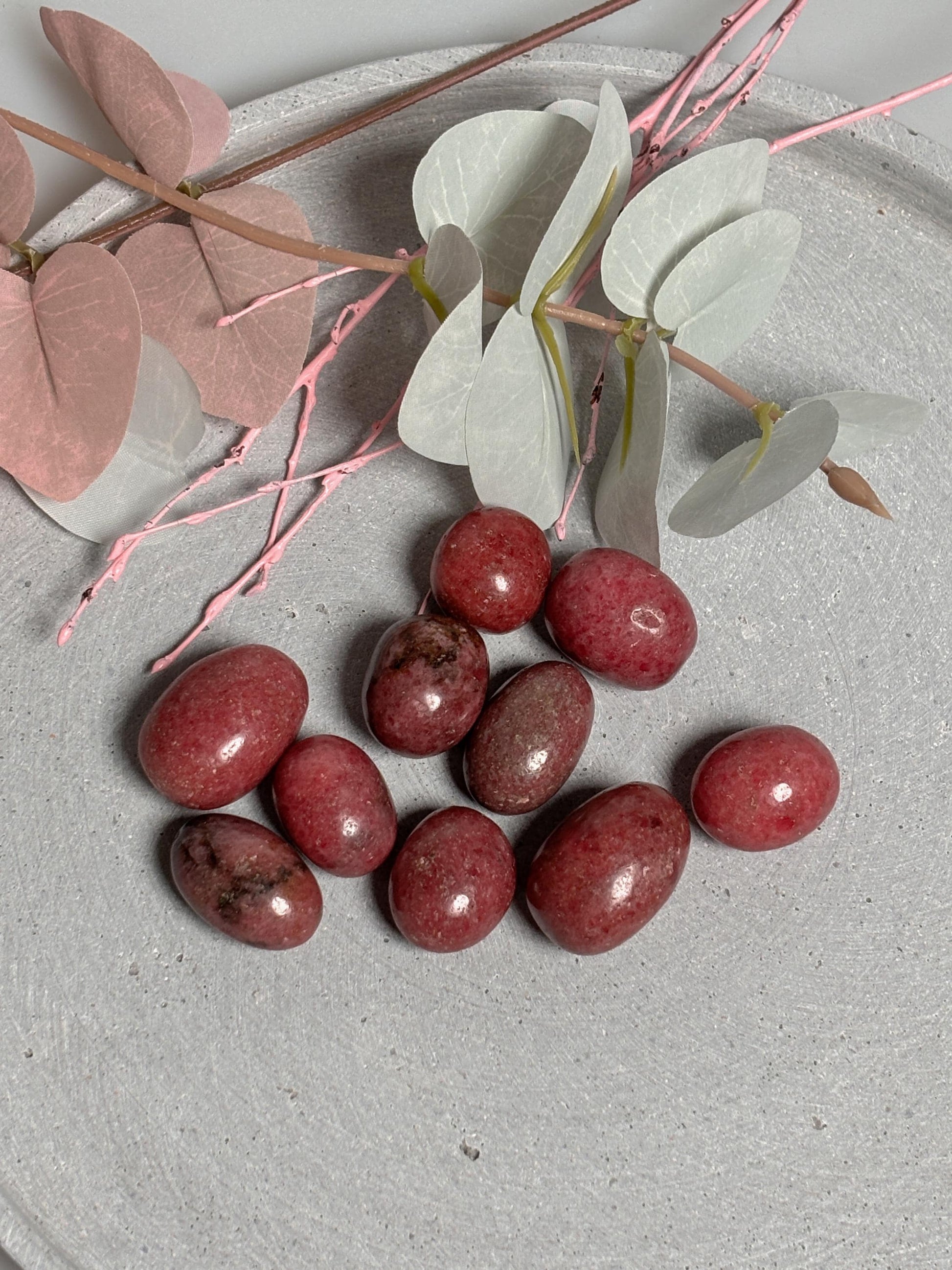 Rhodonit Trommelsteine – Hochwertige Qualität in zwei Größen