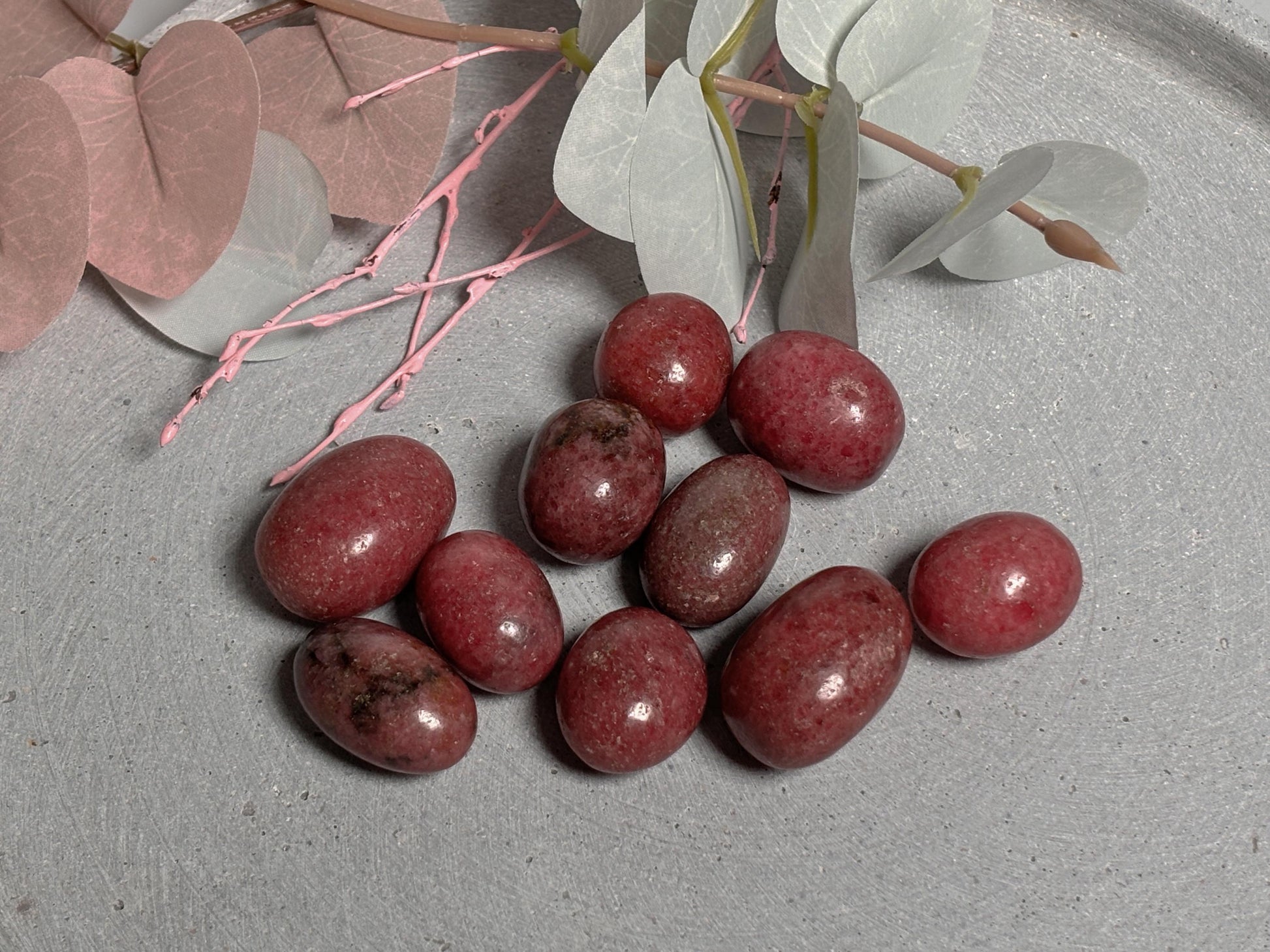 Rhodonit Trommelsteine, hochwertige Qualität, polierte Handschmeichler, Deko- oder Heilsteine