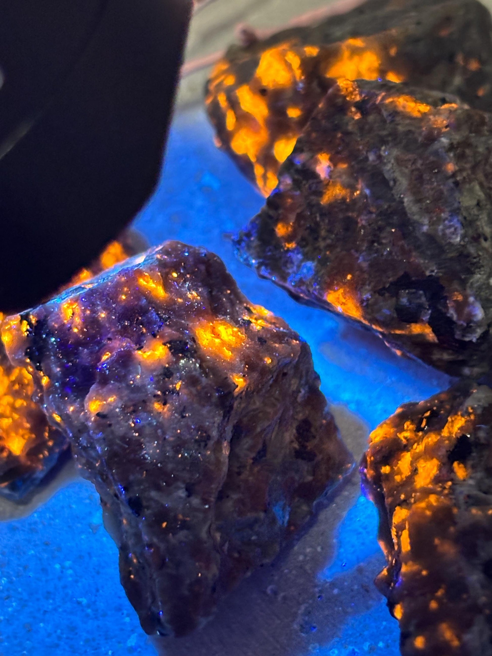 Die Yooperlite Rohsteine eignen sich ideal für Altare, Lichtarbeit, Kristallgitter oder als besondere Deko mit UV-Licht. Besonders schön wirken sie in Kombination mit anderen fluoreszierenden Kristallen oder als energetischer Begleiter im Alltag. Wenn du gezielt ein Stück möchtest, schreib mir einfach – ich helfe dir gerne bei der Auswahl.