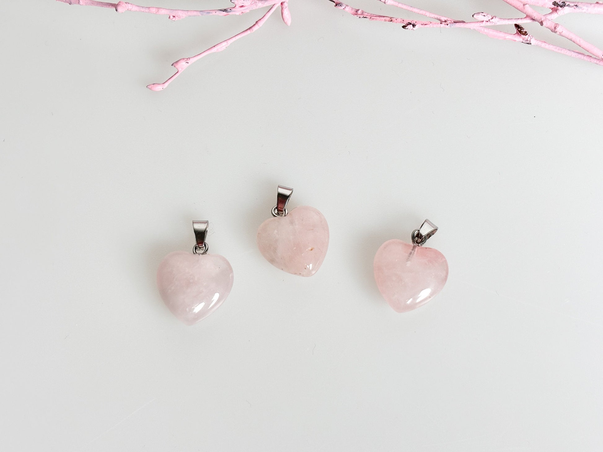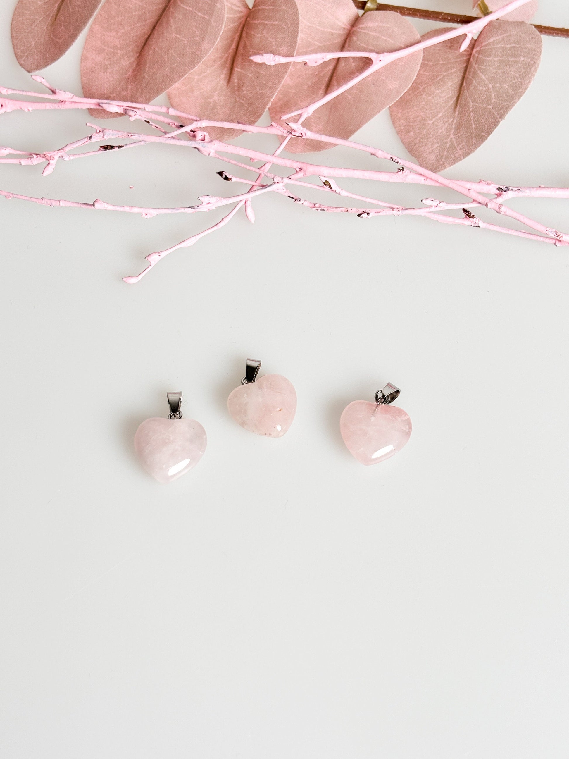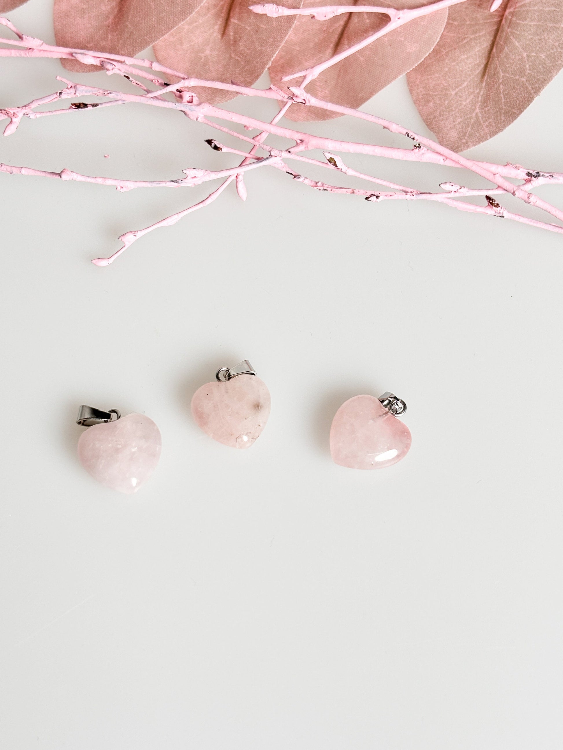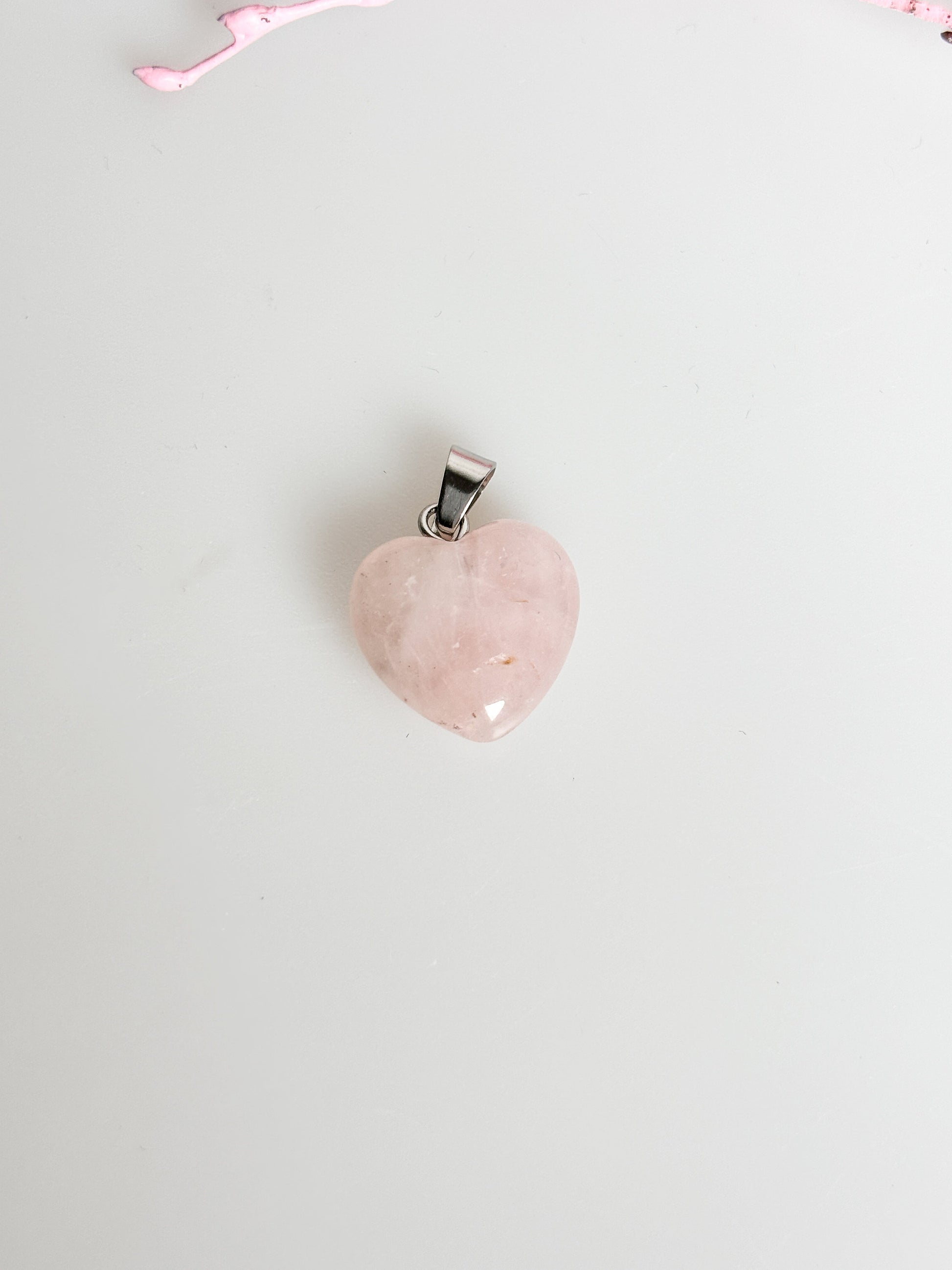 Zarter Rosenquarz Herzkettenanhänger - Silberne Öse - 1,5x1,5cm