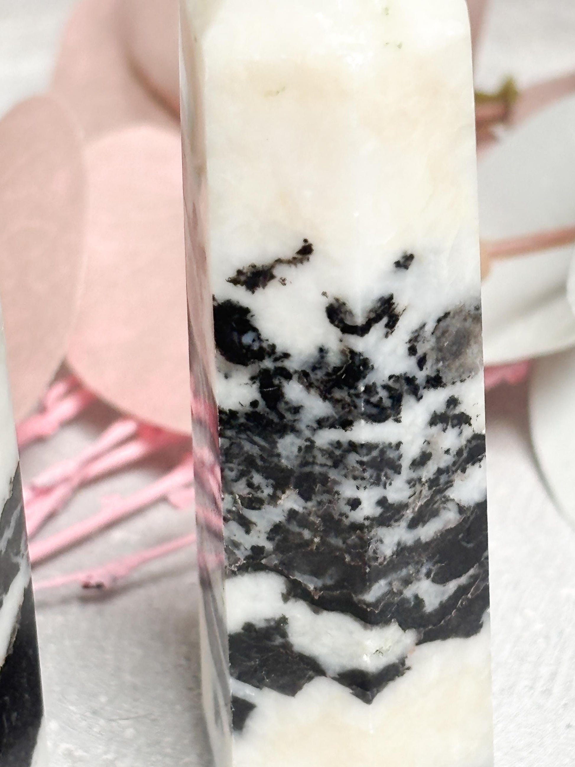 Zebra Jaspis Turm schwarz-weißer Kristall ca. 8,49,9 cm, Edelstein Spitze, Naturstein Deko, Healing Crystal Tower, Zebra Jasper Point