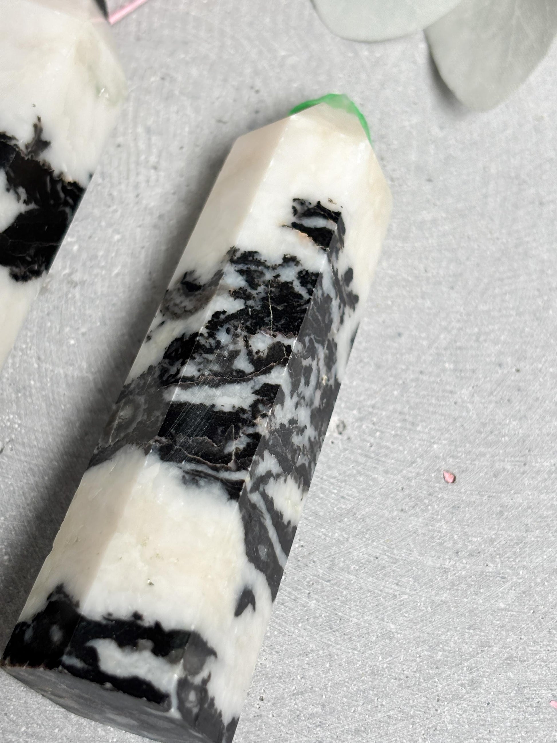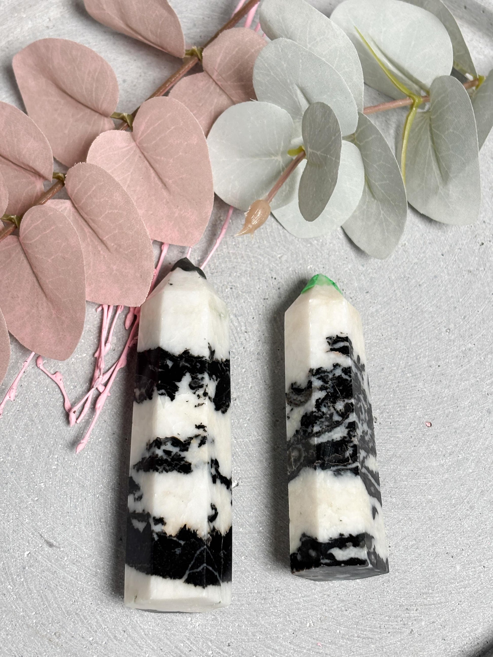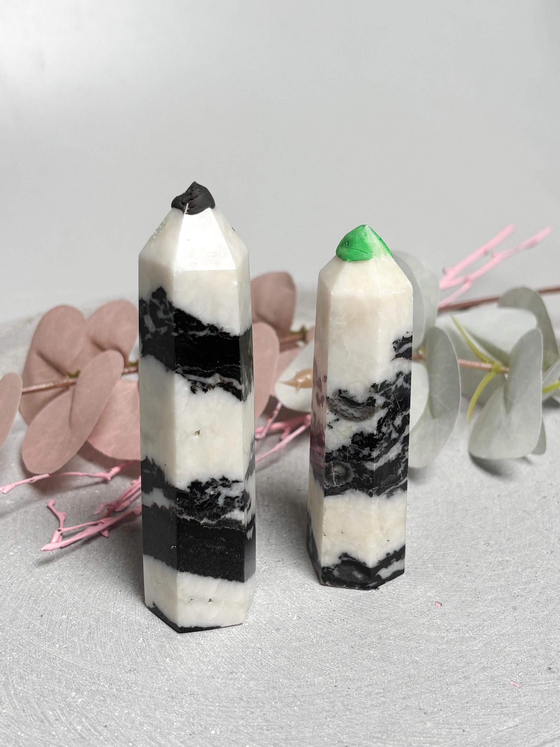Die Zebra-Jaspis-Türme eignen sich perfekt für Meditation, Energiearbeit oder als harmonisches Dekoelement. Ob einzeln oder als Duo – sie bringen Struktur, Fokus und eine schützende Atmosphäre in deinen Raum. Besonders schön wirken sie in Kombination mit weißen Kristallen oder auf einem Kristalltablett.